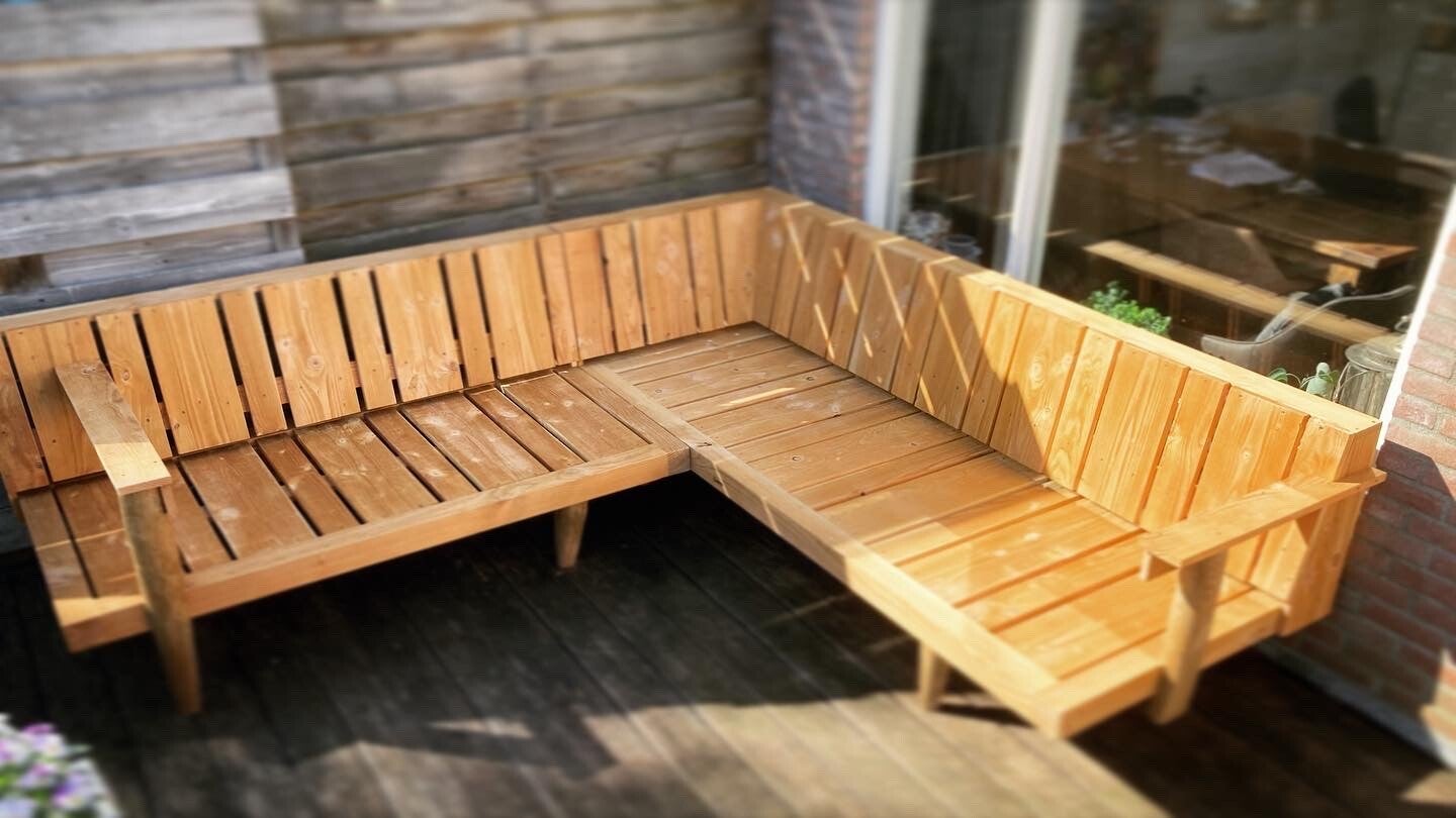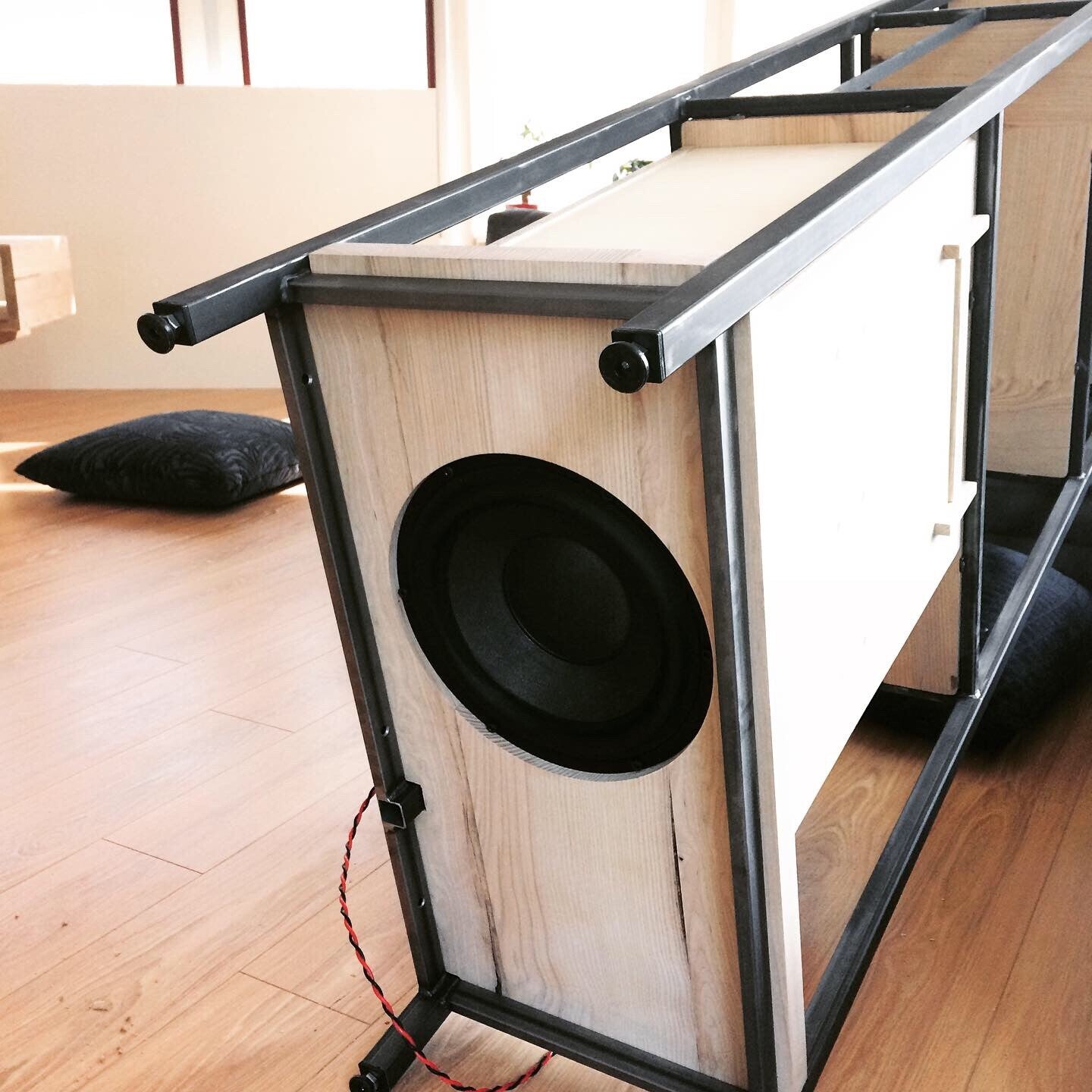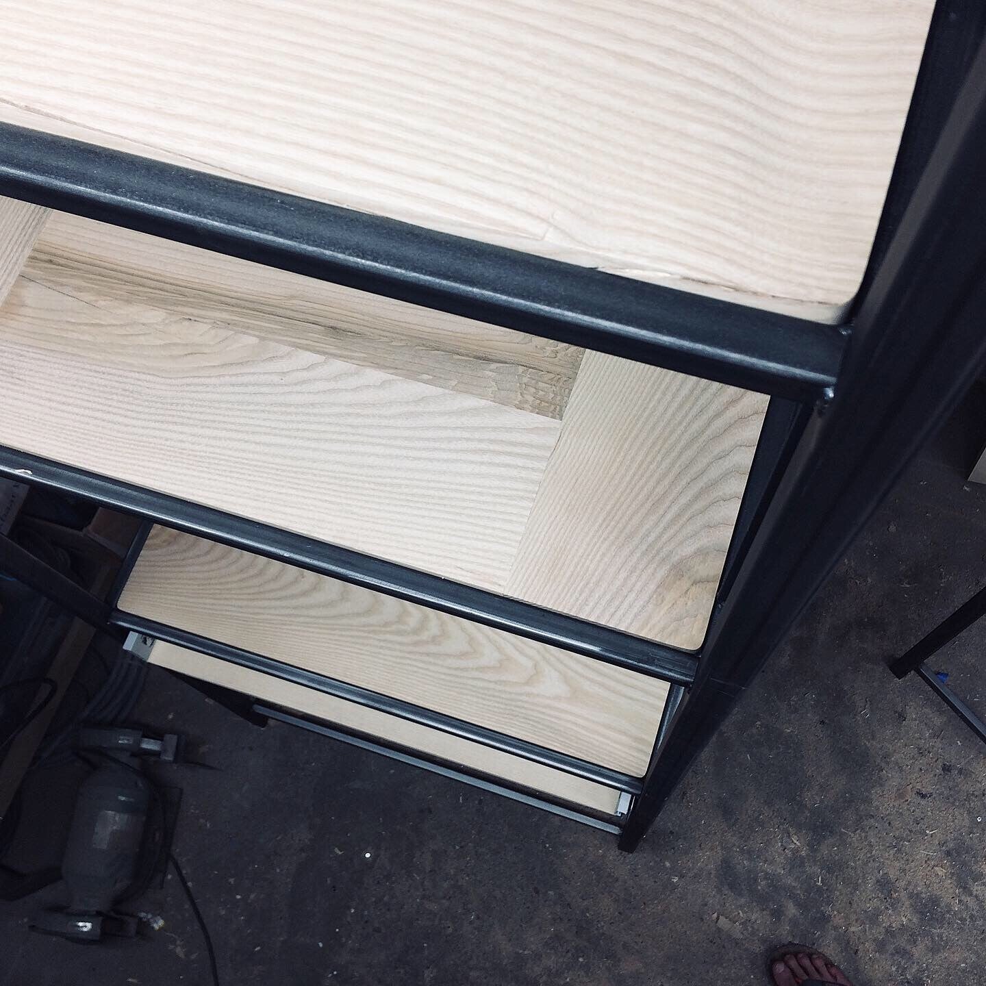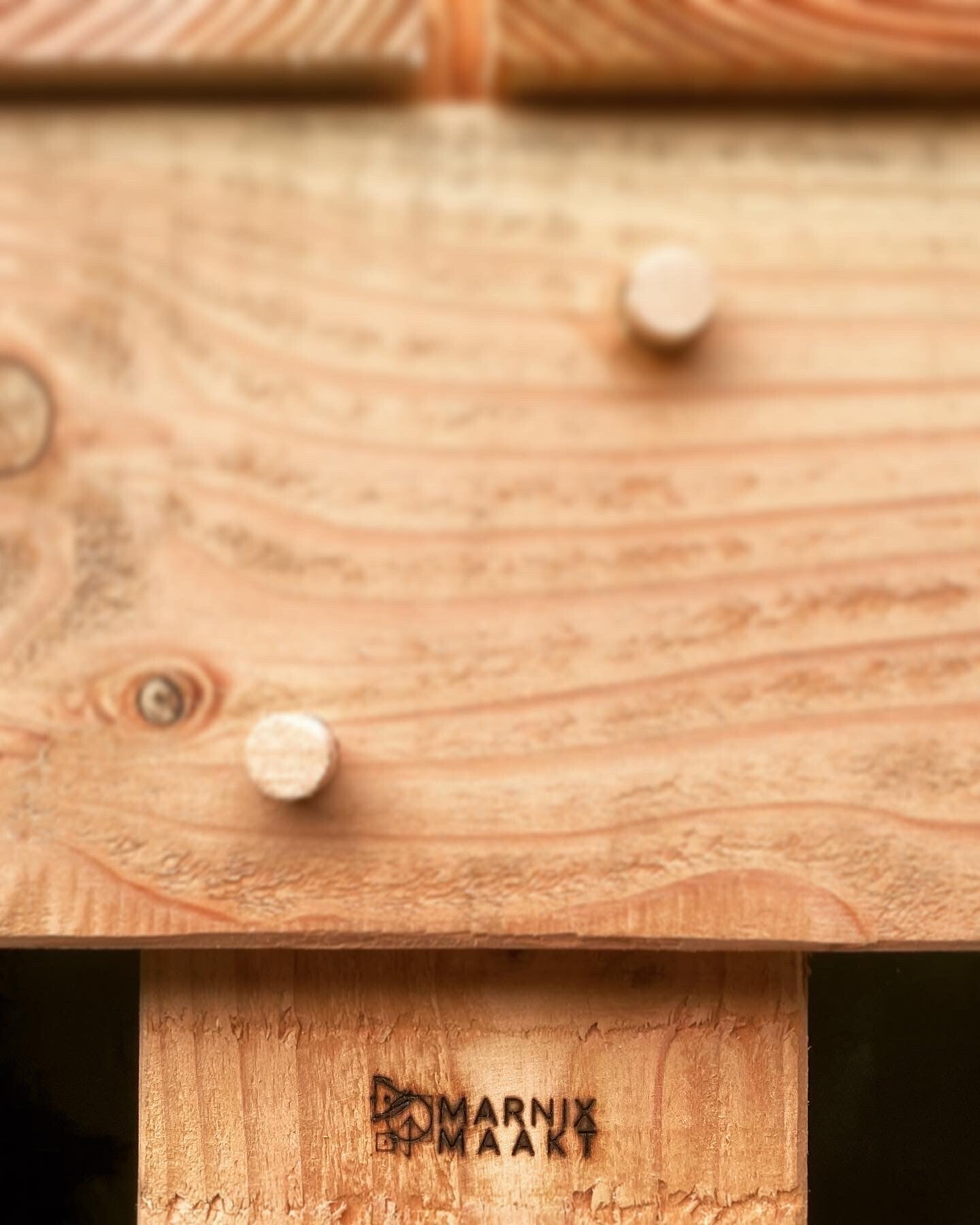 Klikoberging met bank. Douglas, kastanje en zwart bamboe ↓