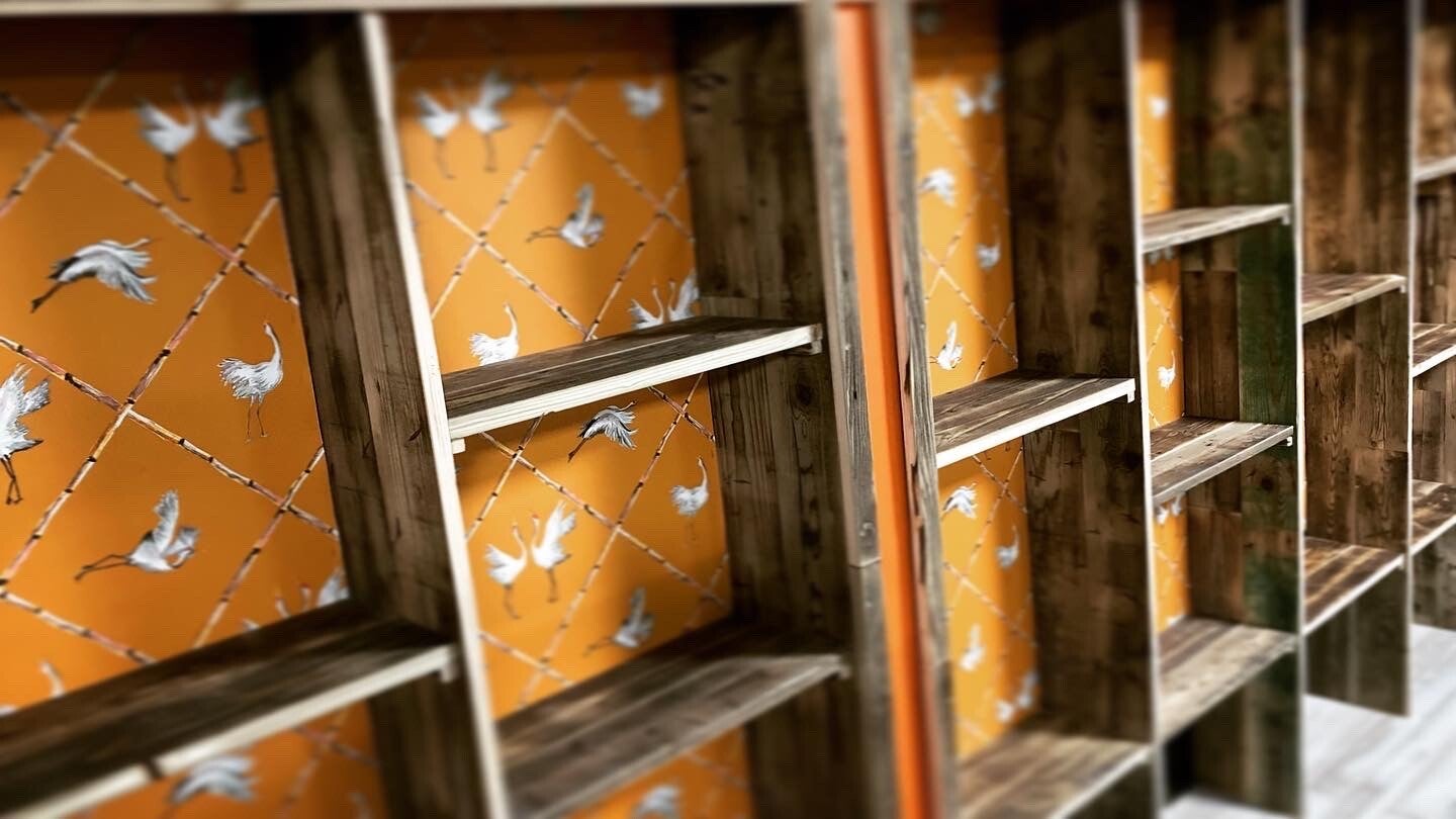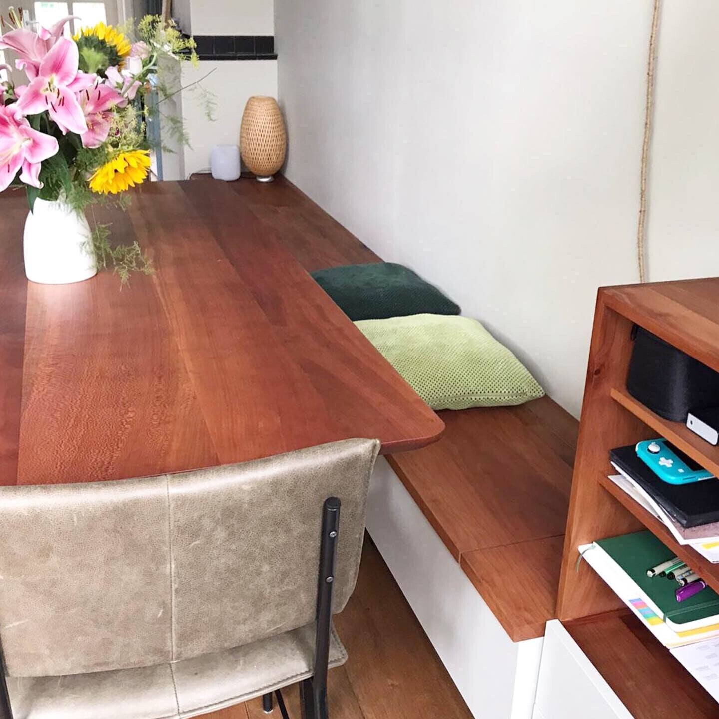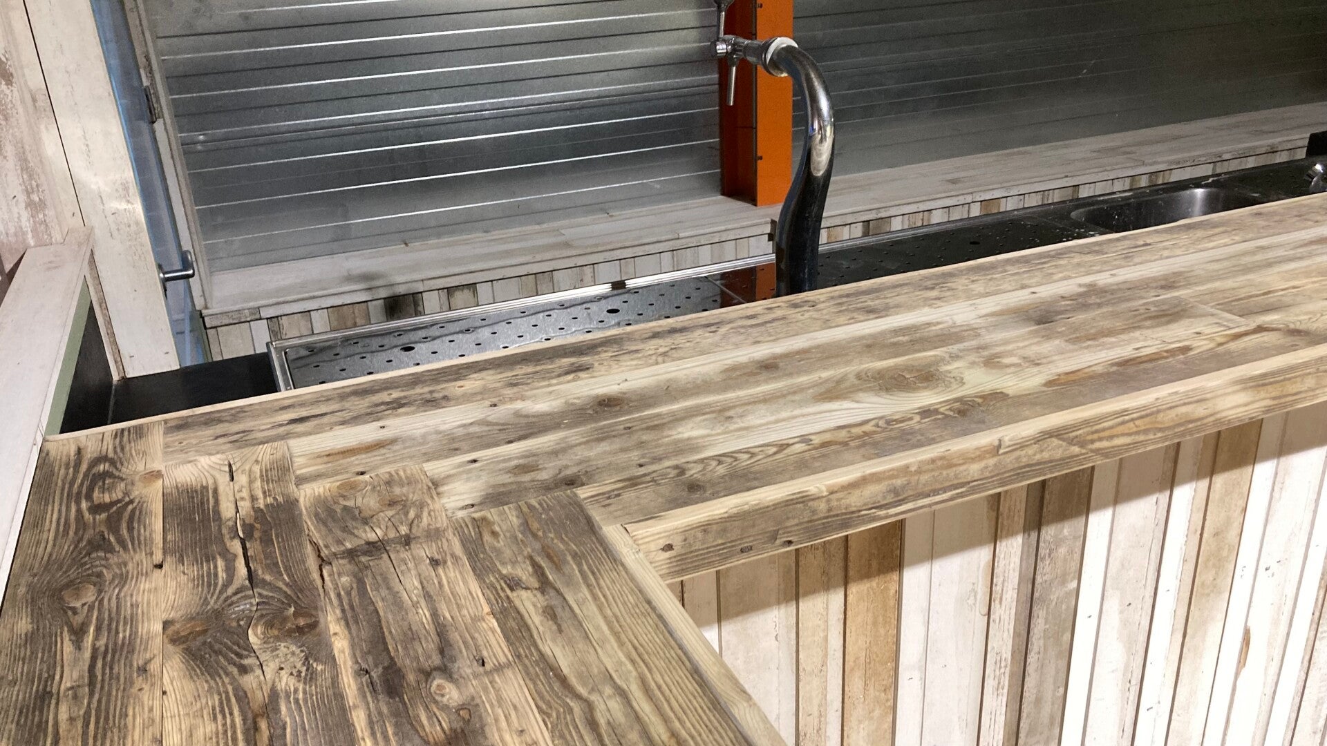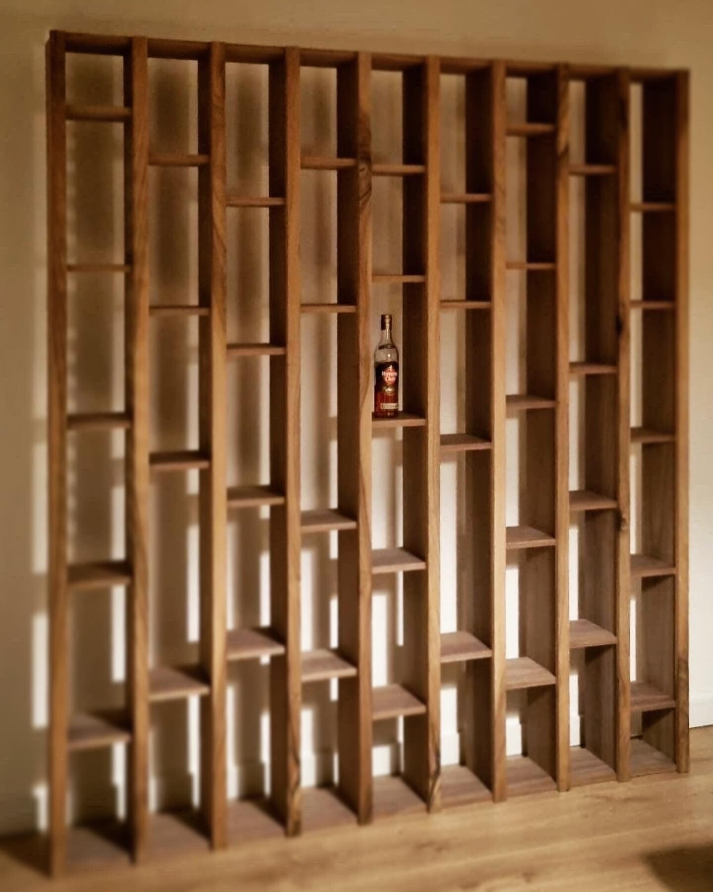 Klikoberging met bank. Douglas, kastanje en zwart bamboe ↓