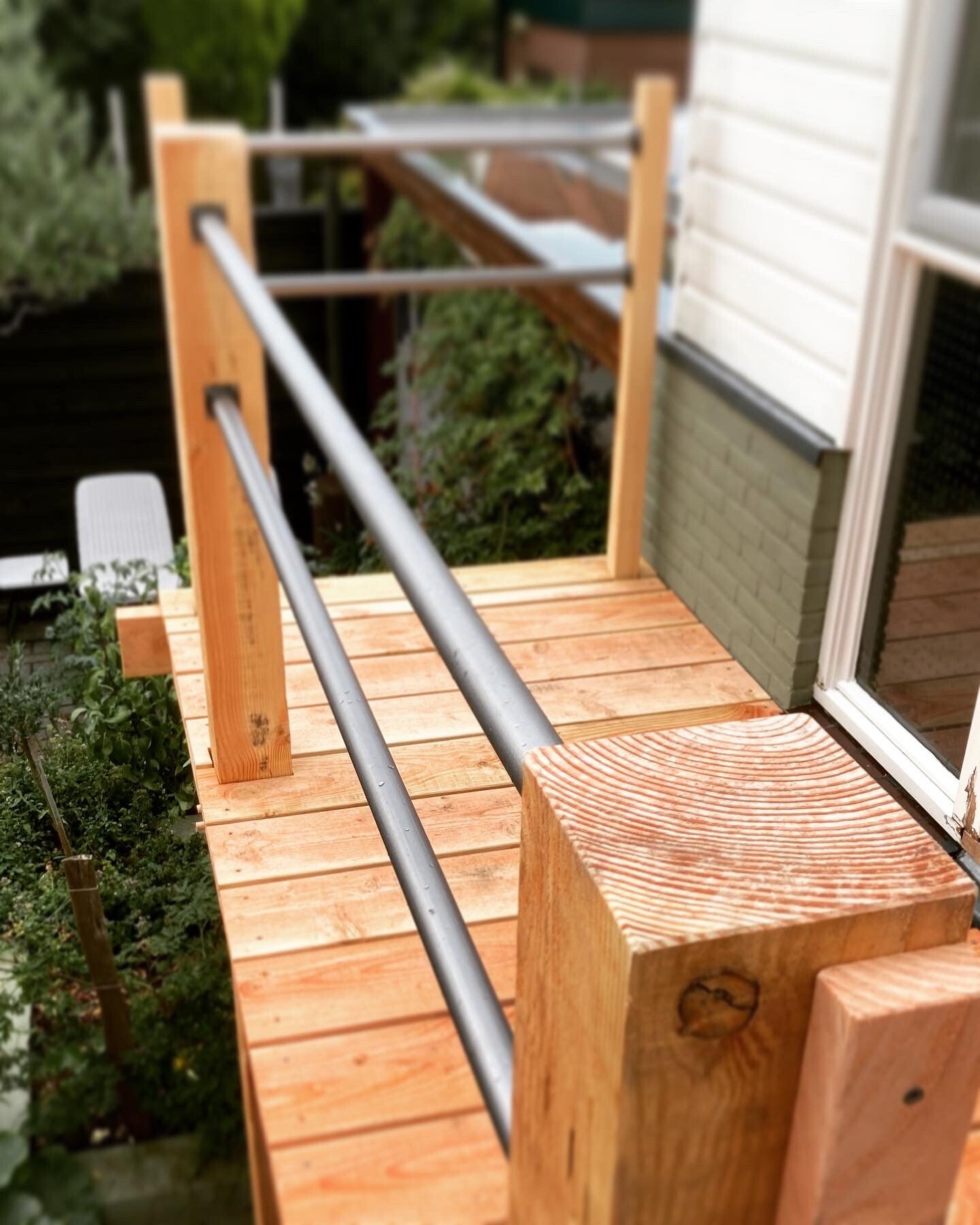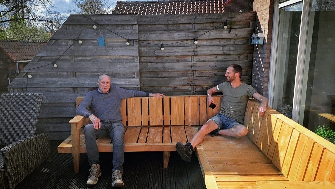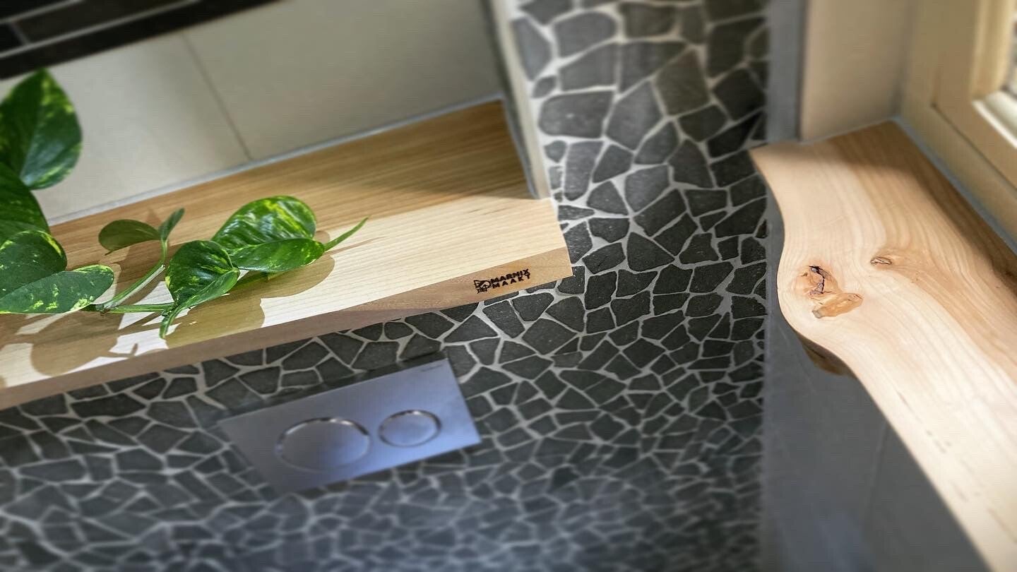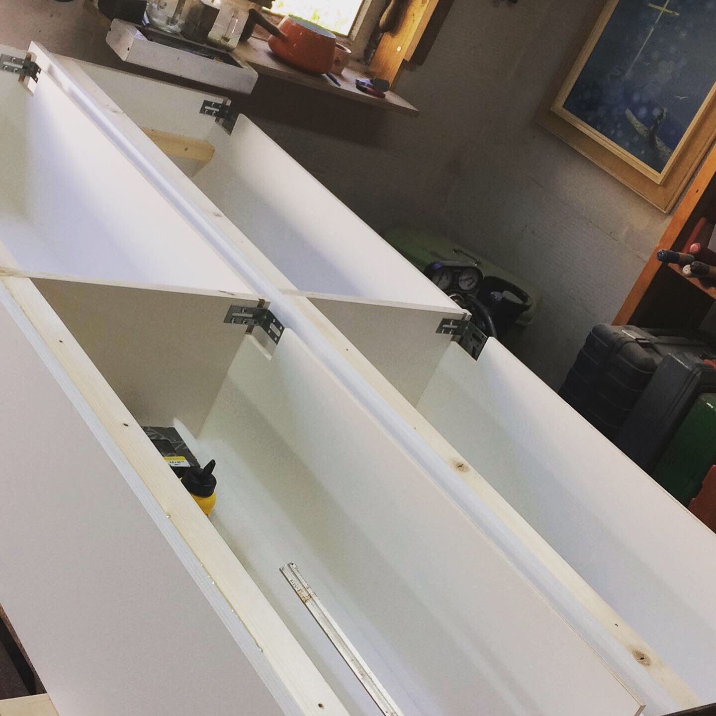 Klikoberging met bank. Douglas, kastanje en zwart bamboe ↓