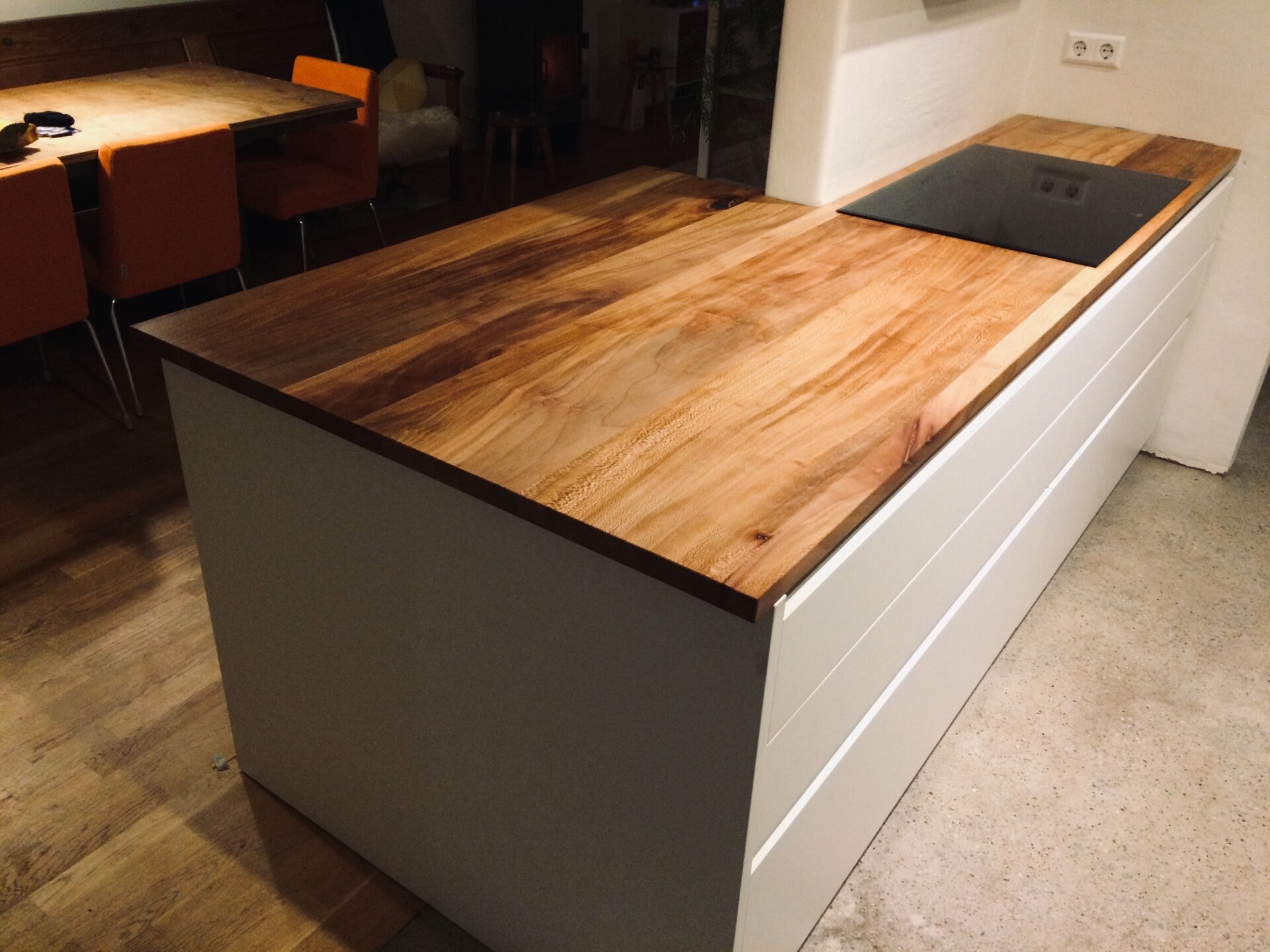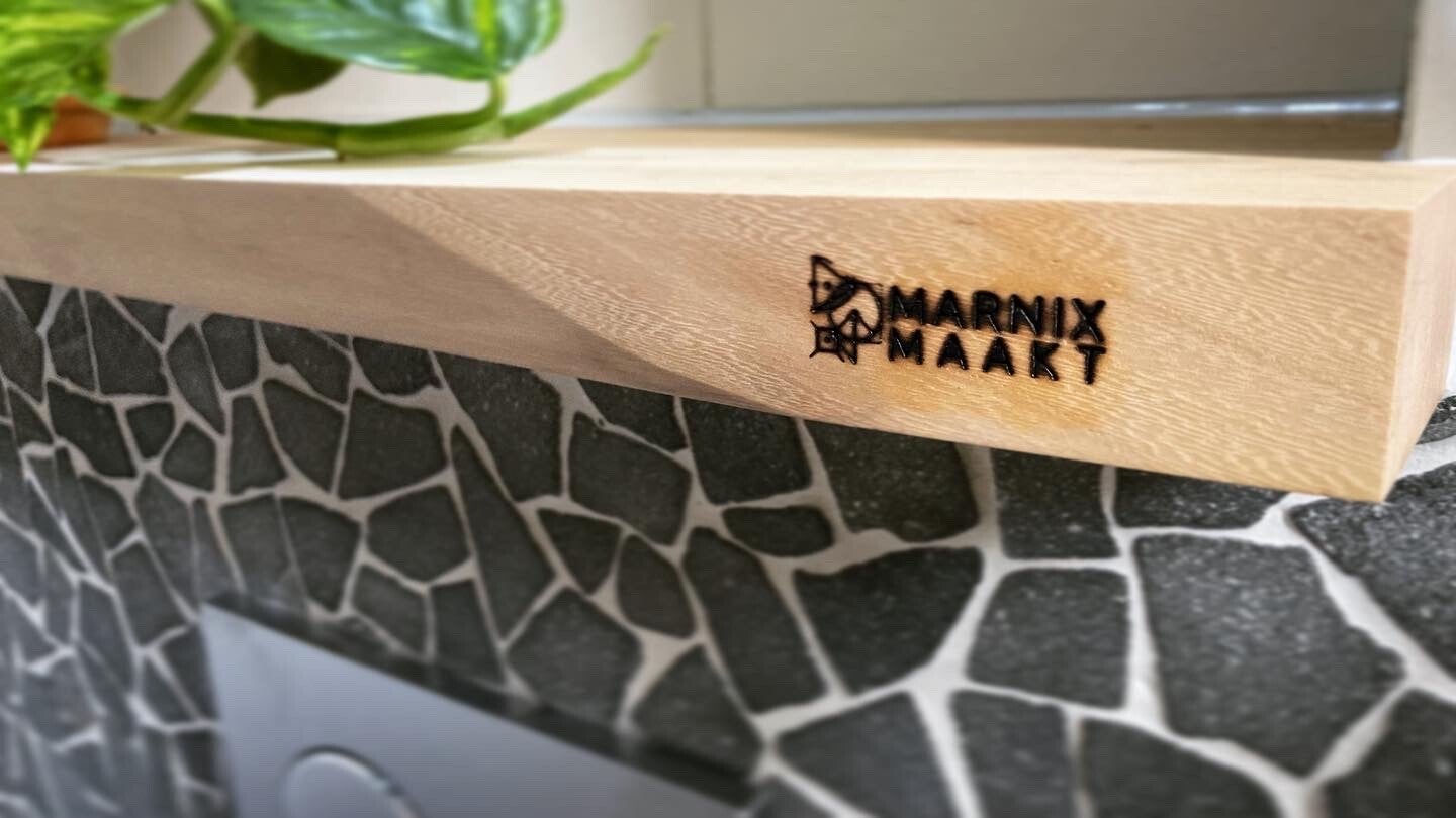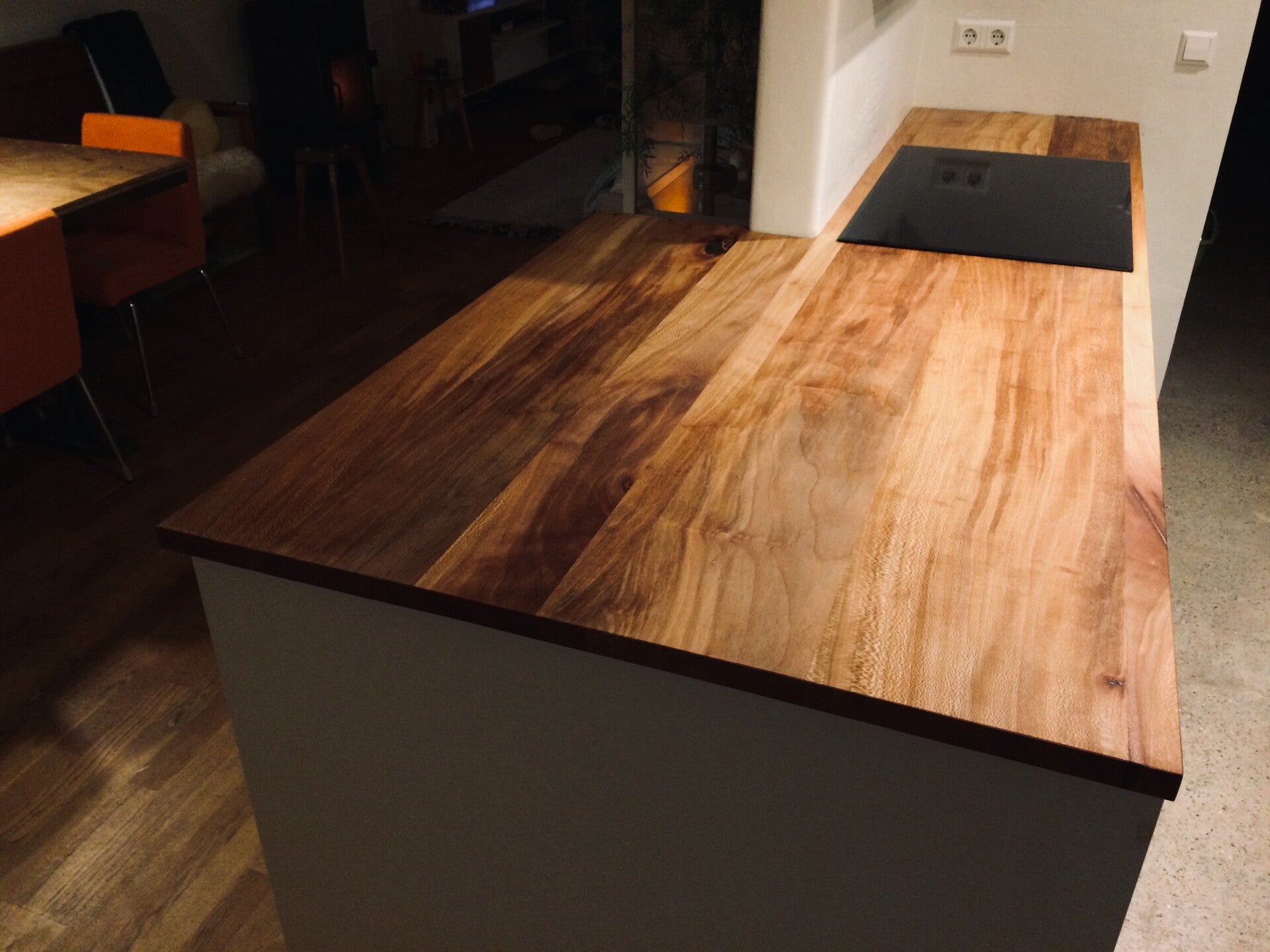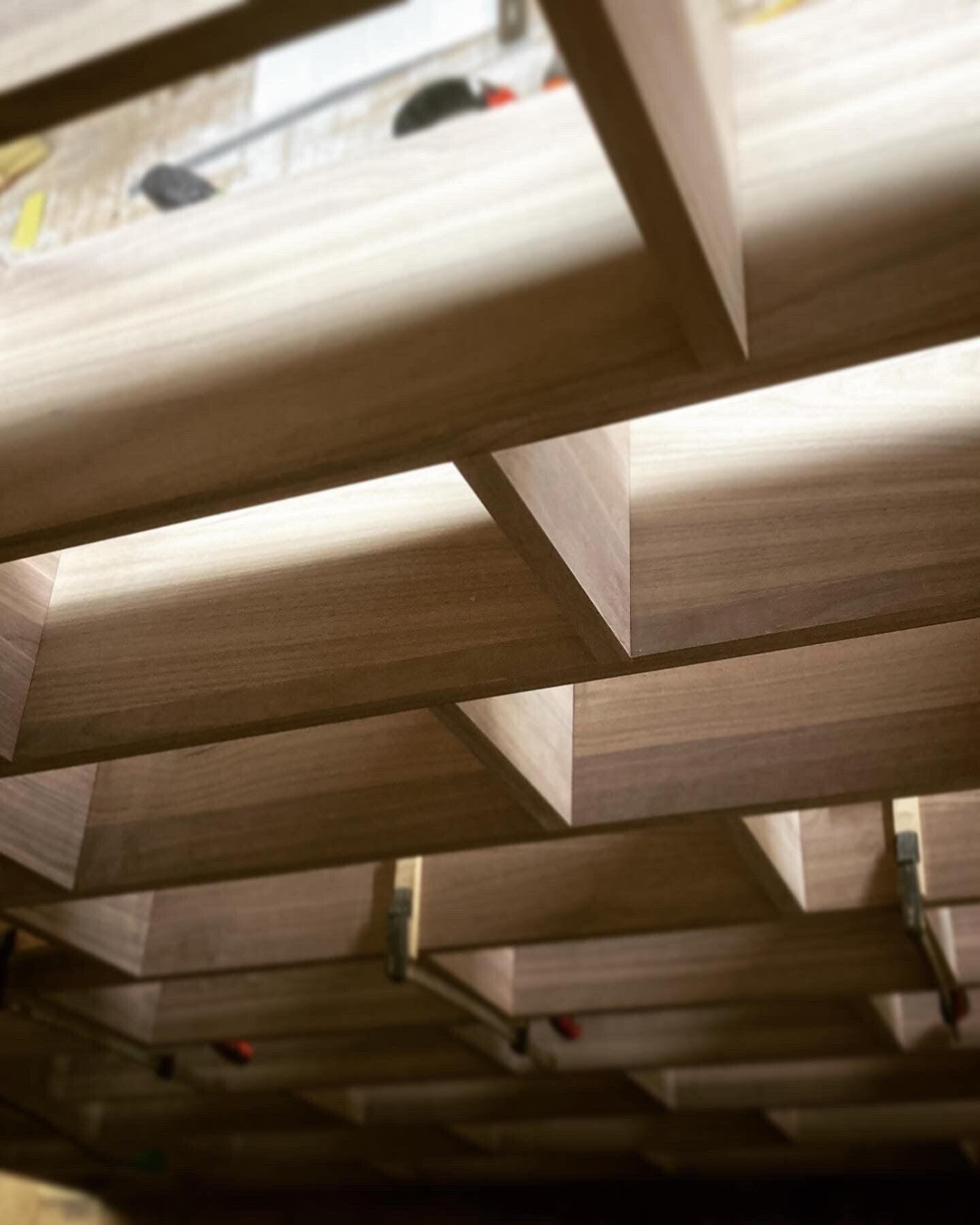 Wandmeubel noten edelplaat met massief walnoot deklatten ↓