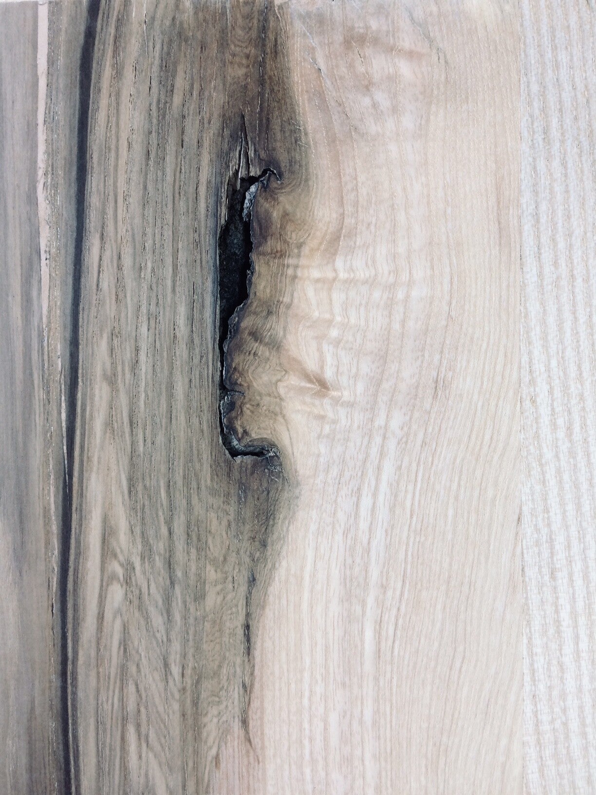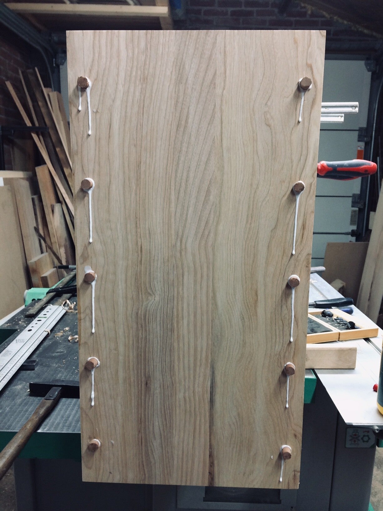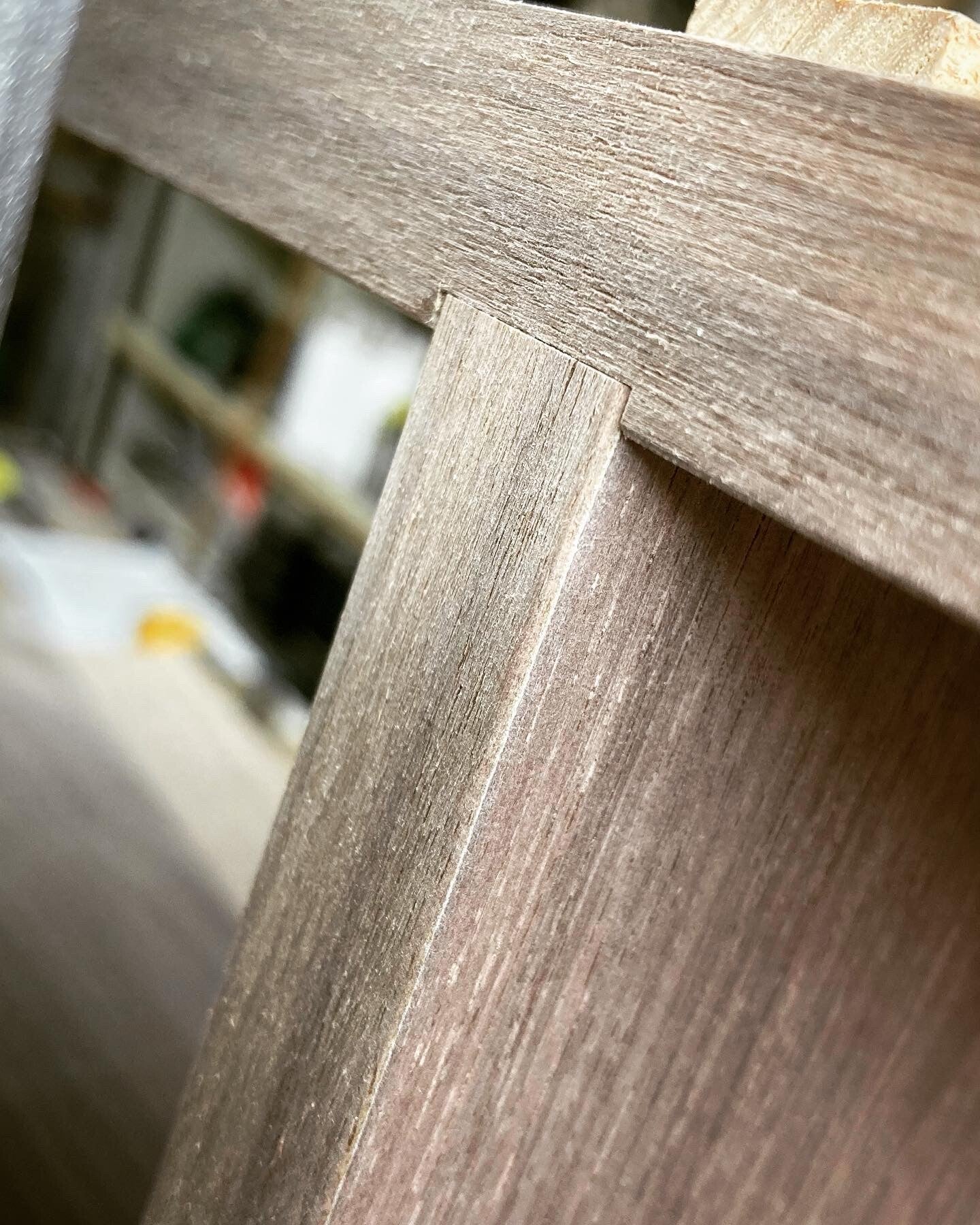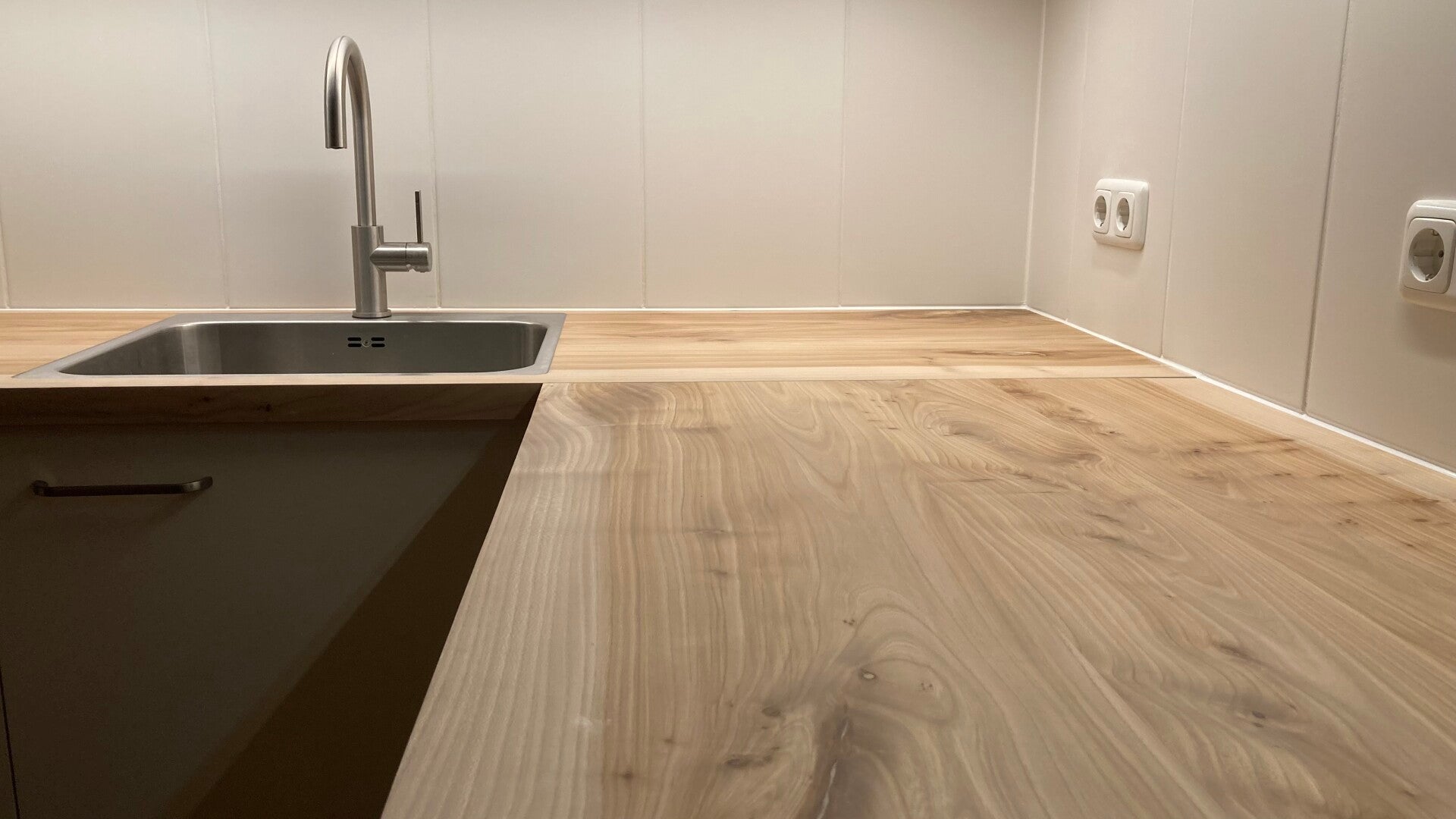 Wandmeubel noten edelplaat met massief walnoot deklatten ↓