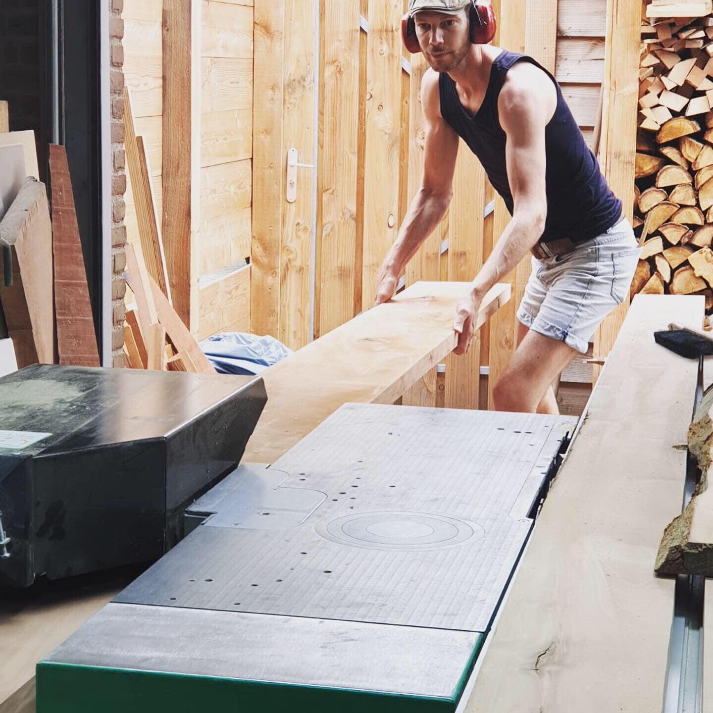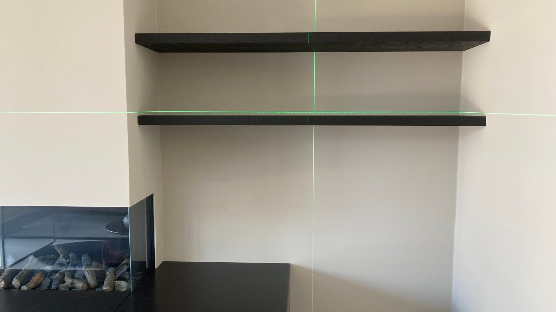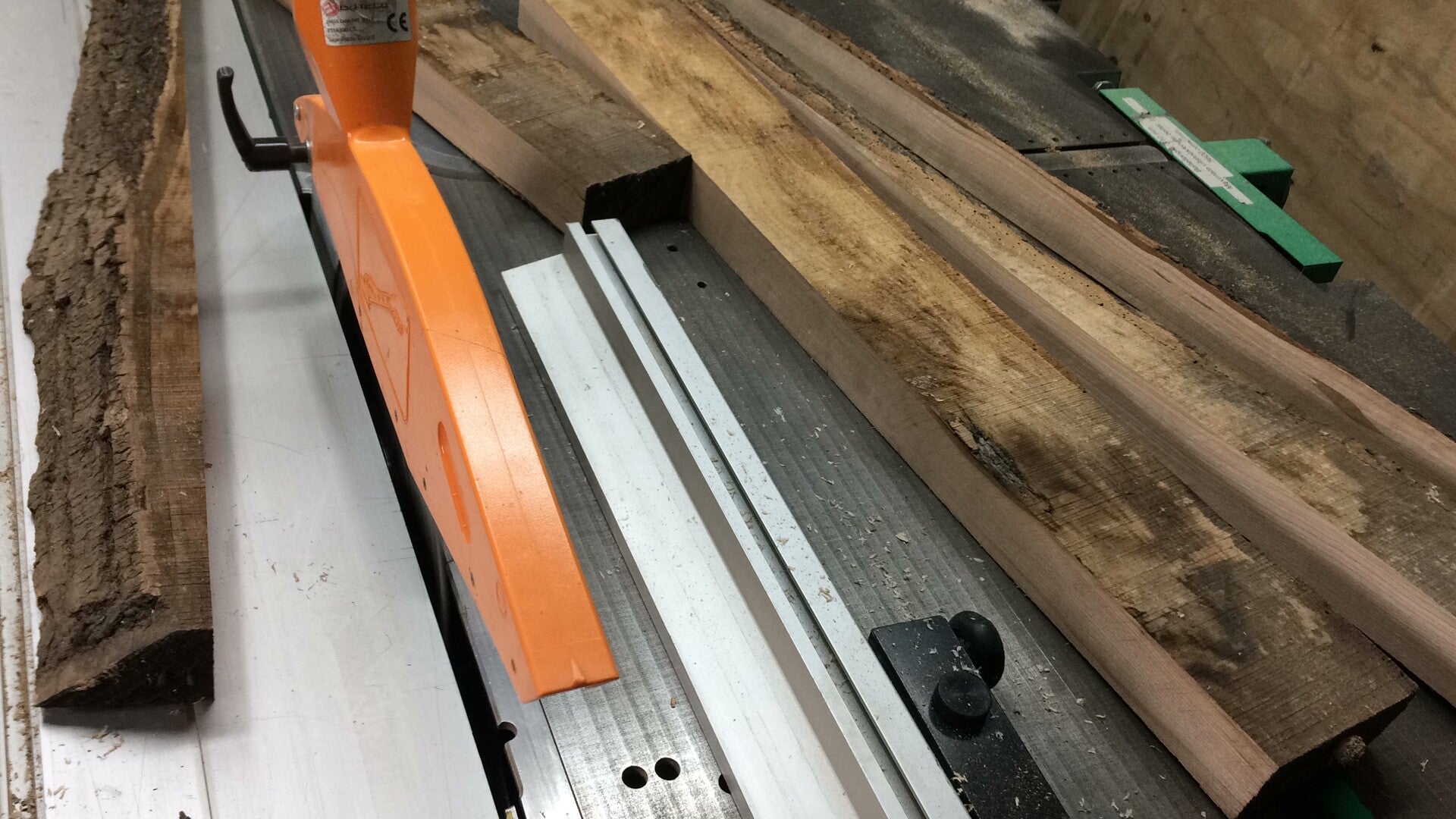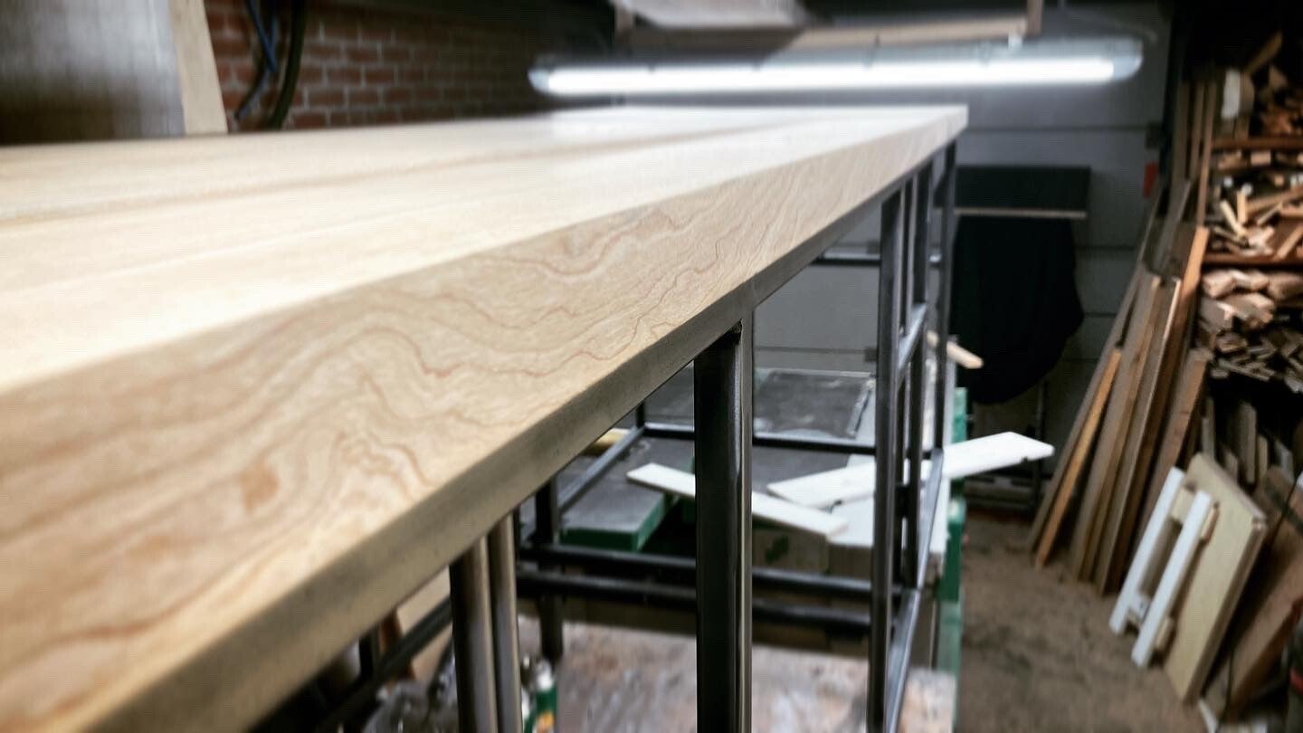 Wandmeubel noten edelplaat met massief walnoot deklatten ↓