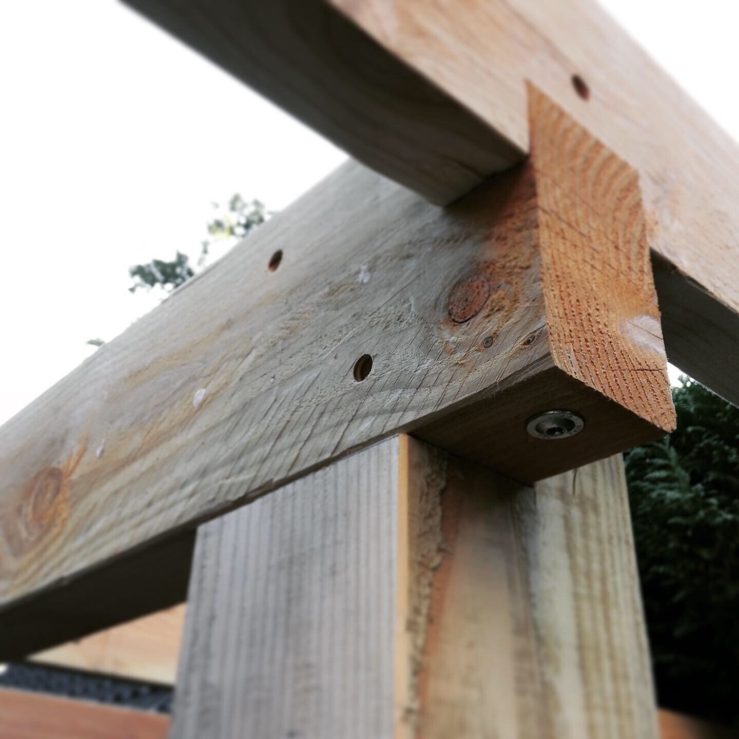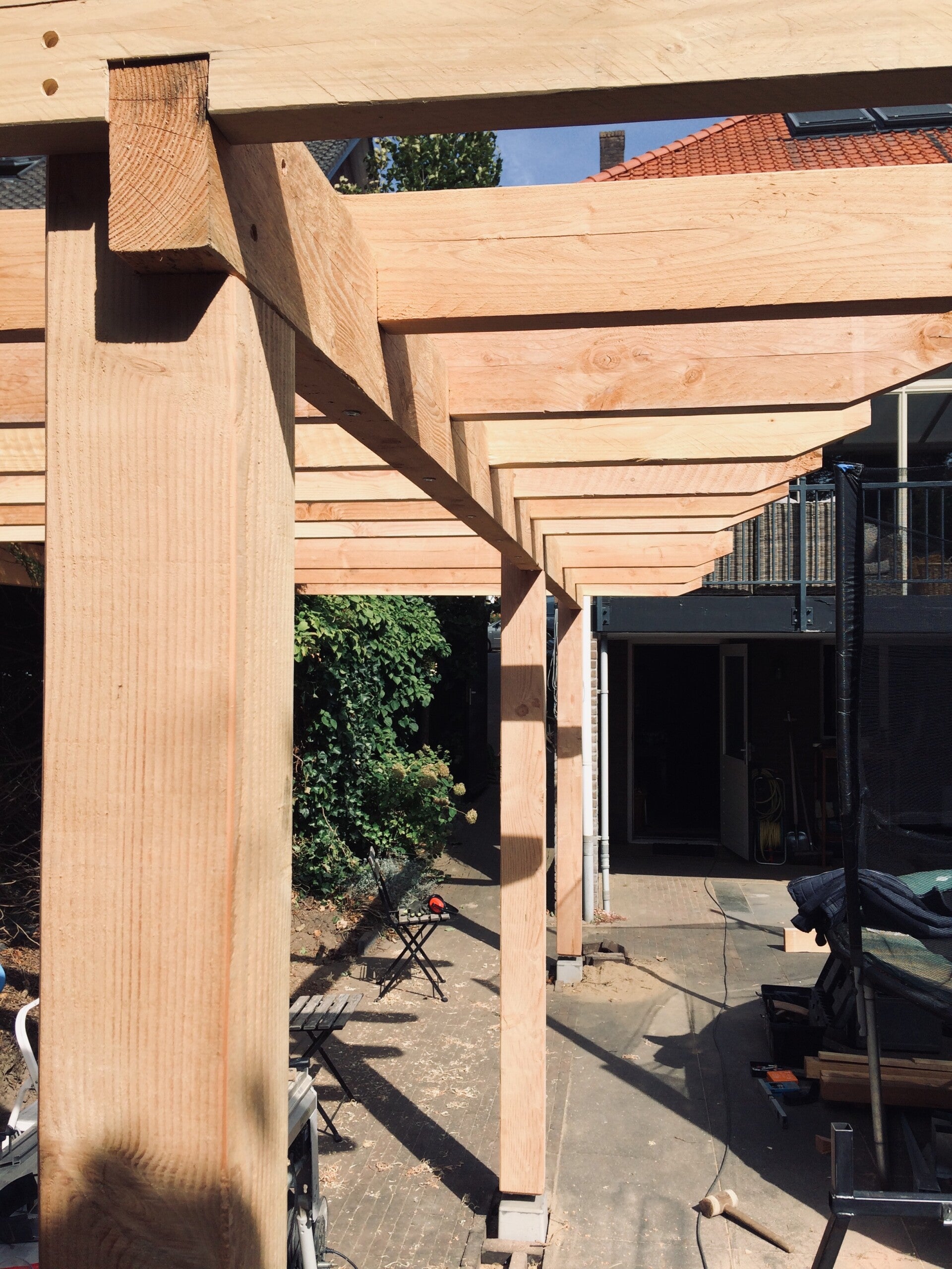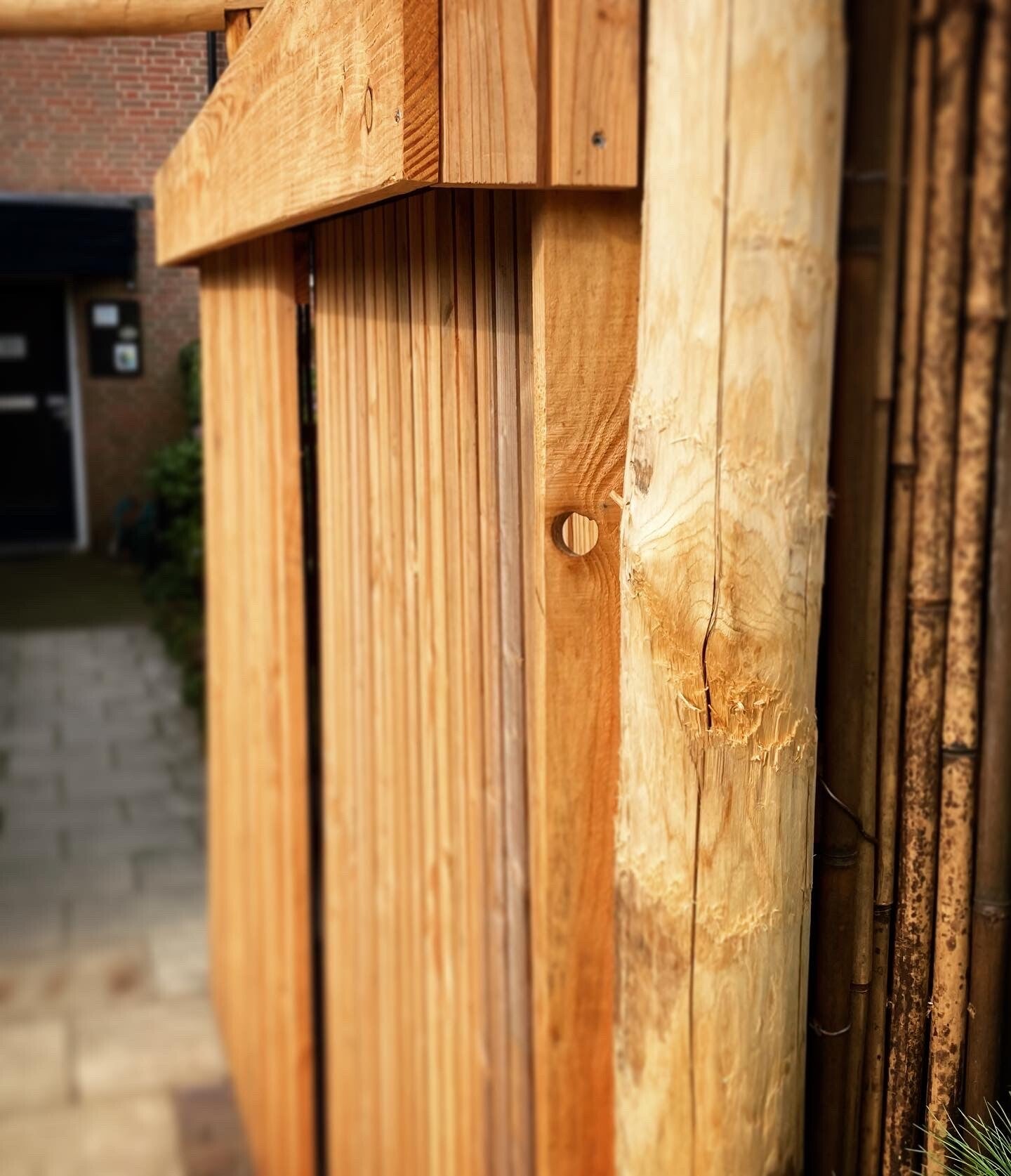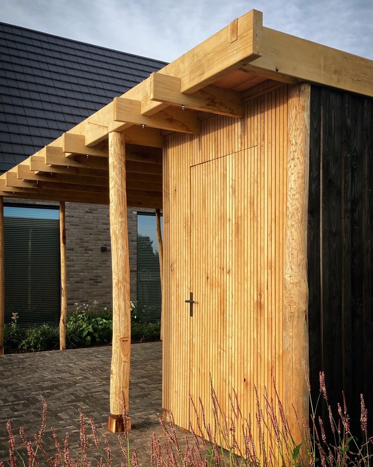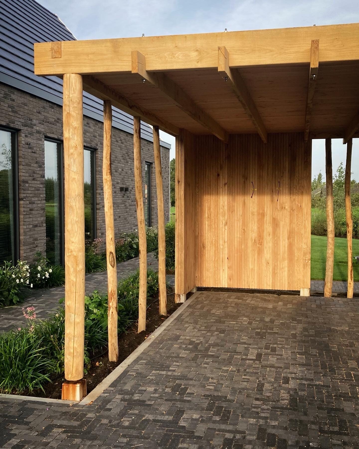 Kastanje palen met eiken constructie en eiken gevelbekleding ↓