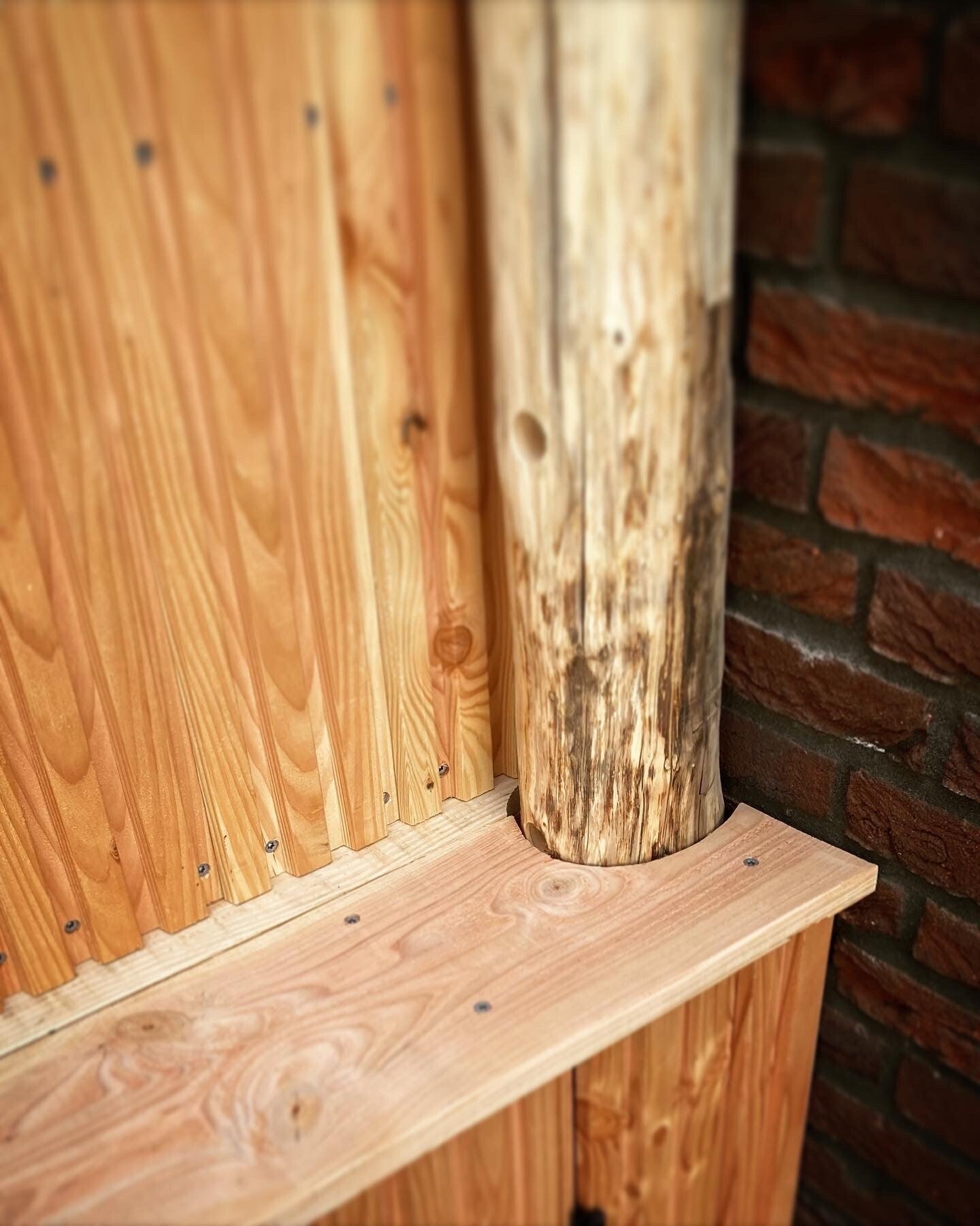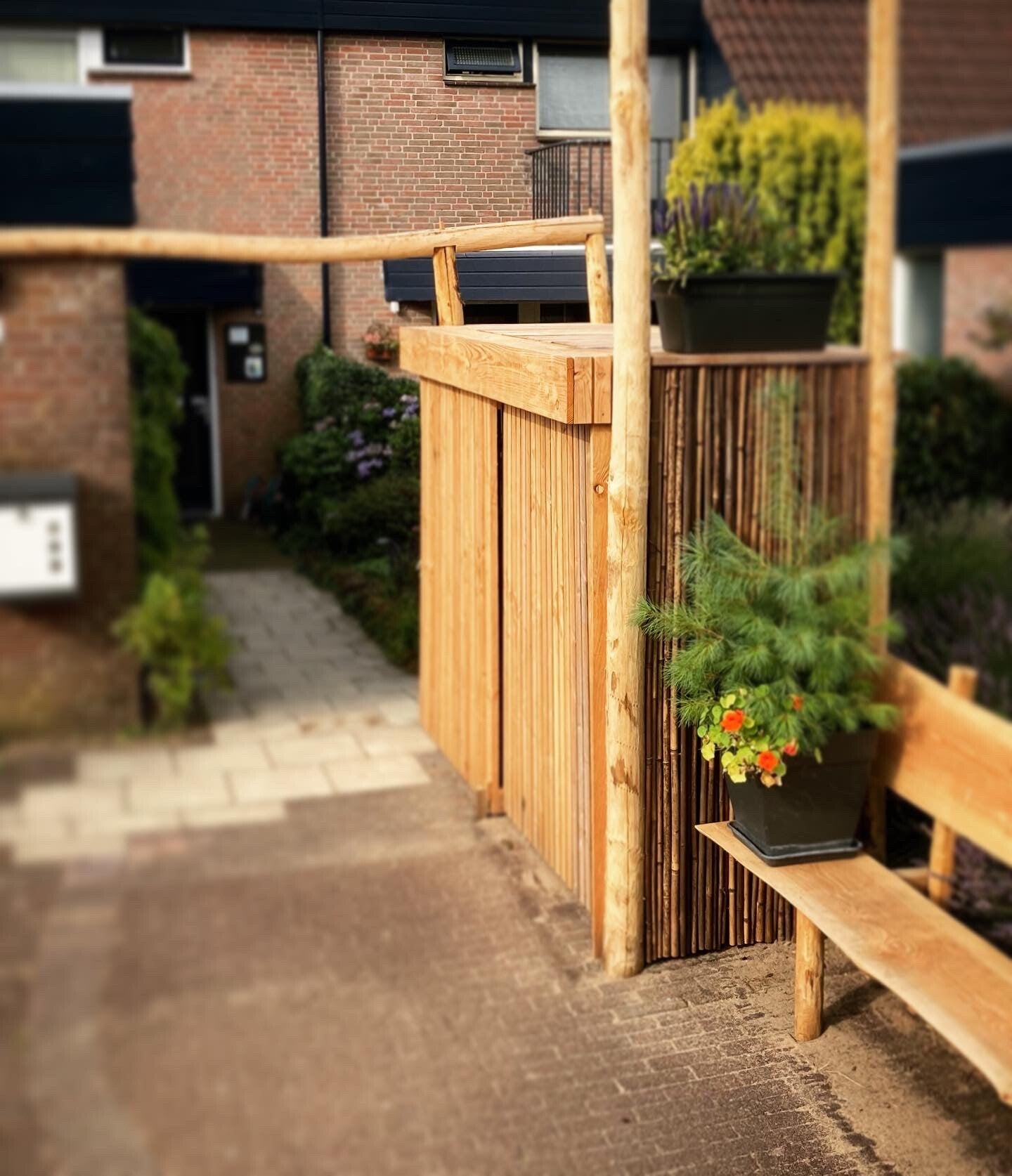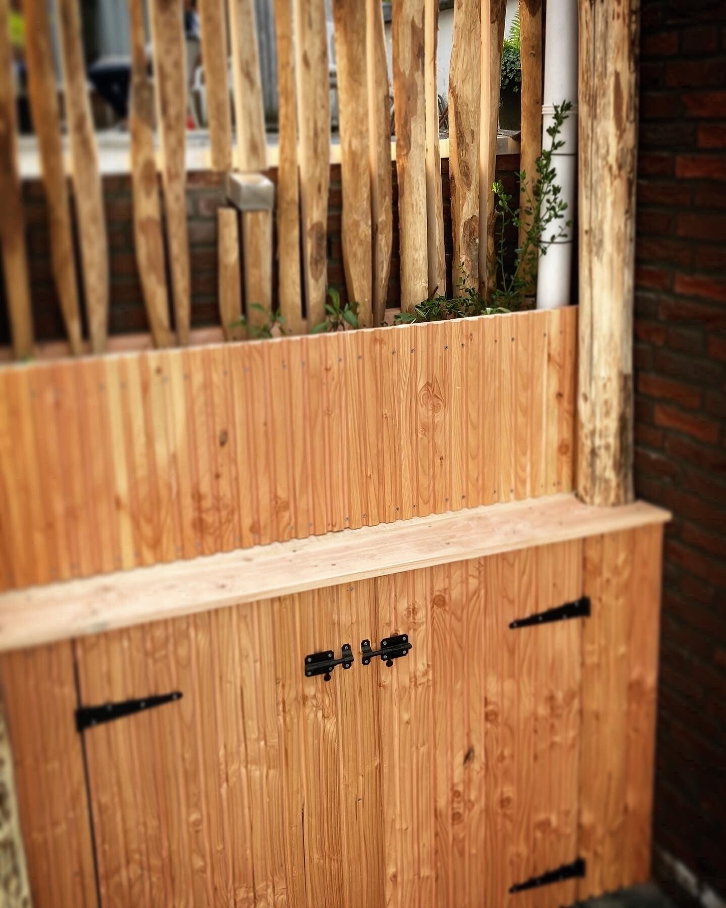 Afscheiding met kast en plantenbak, kastanje met douglas ↓
