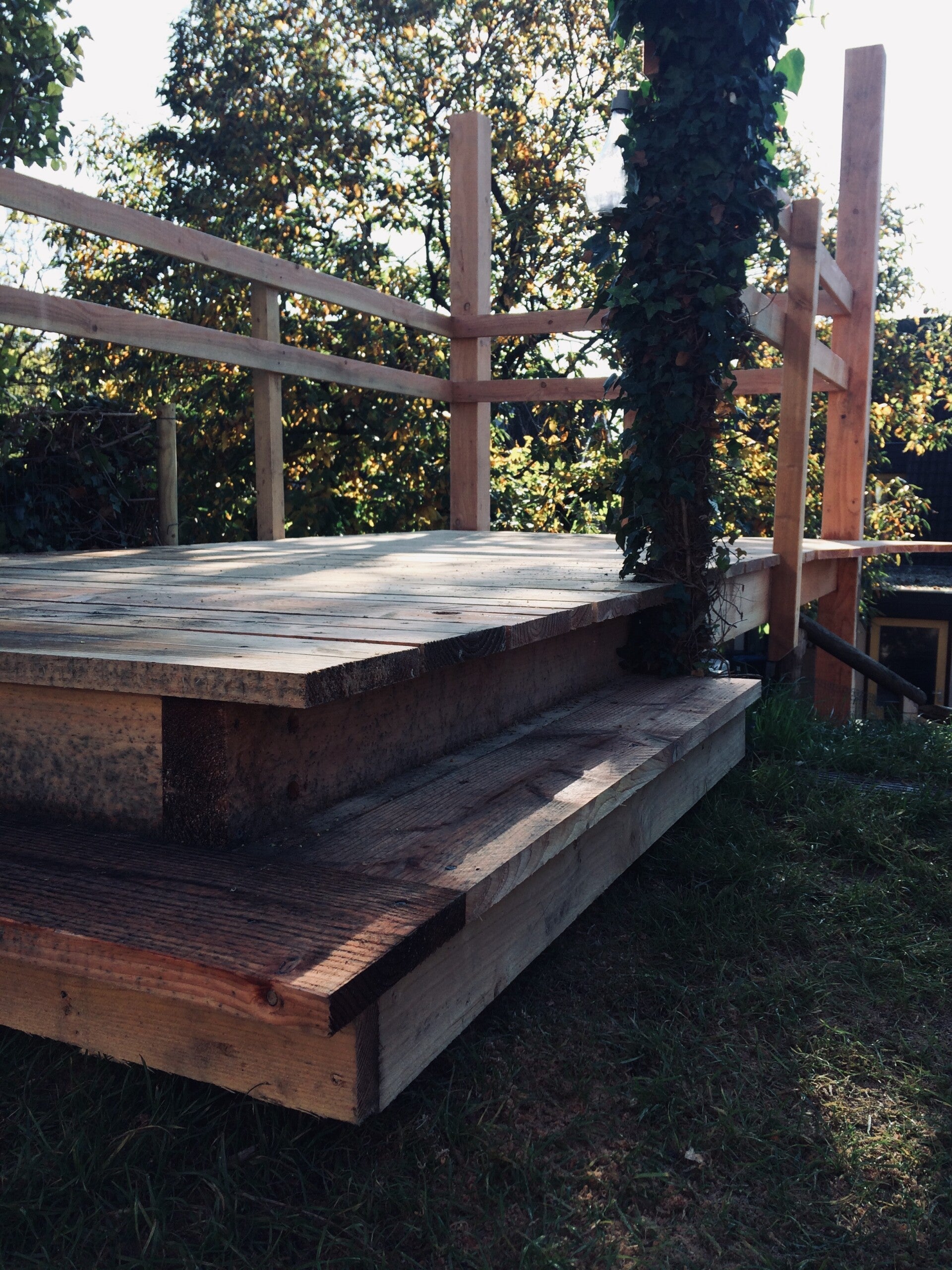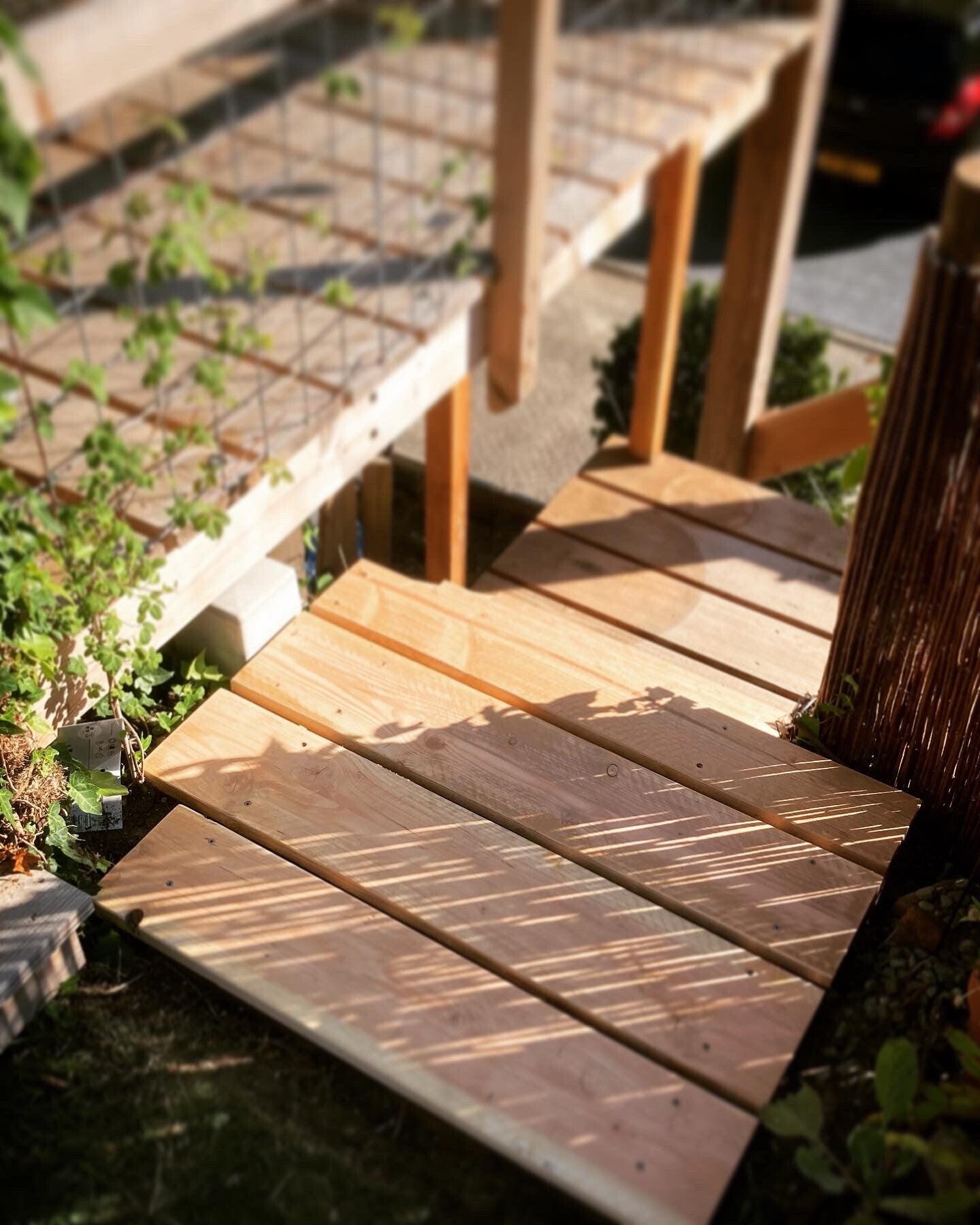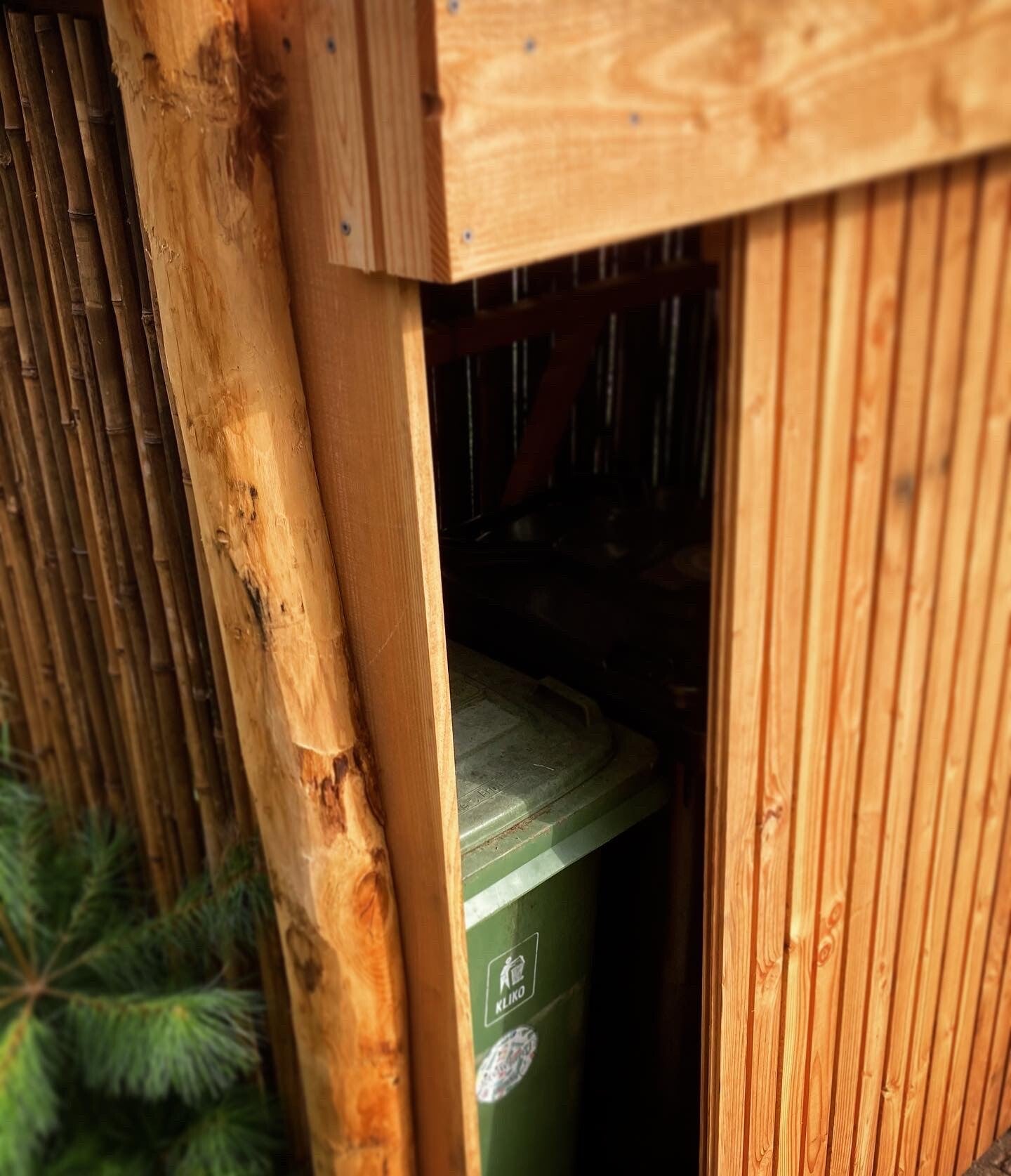 Afscheiding met kast en plantenbak, kastanje met douglas ↓